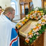 При совершении полиелея духовенство, хоры и все богомольцы многократно воспевали величание ныне прославляемым святителям – Небесным покровителям храма. Митрополит Леонтий совершил полное каждение храма, а после чтения евангельского зачала обратился в духовенству и мирянам с проповедью.